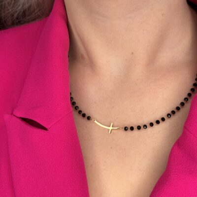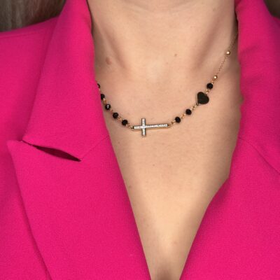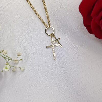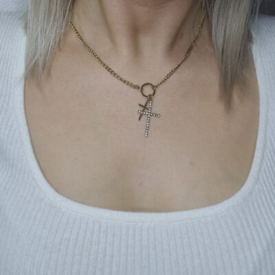 Naszyjnik z krzyżykiem w kolorze złotym stal chirurgiczna