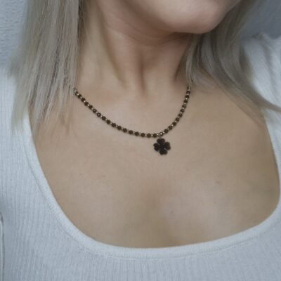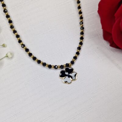 Czarny koralik ze złotym listkiem stal chirurgiczna