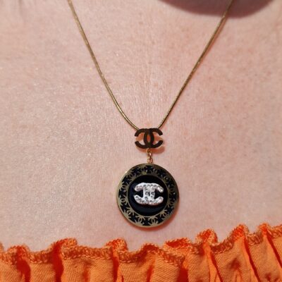 Naszyjnik z ozdobą CC stal chirurgiczna
