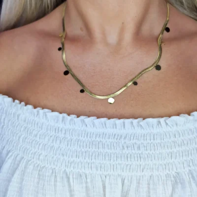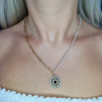 Złoty naszyjnik z białymi perłami stal chirurgiczna