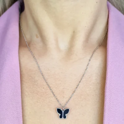 Srebrny naszyjnik z zawieszką motyla stal chirurgiczna