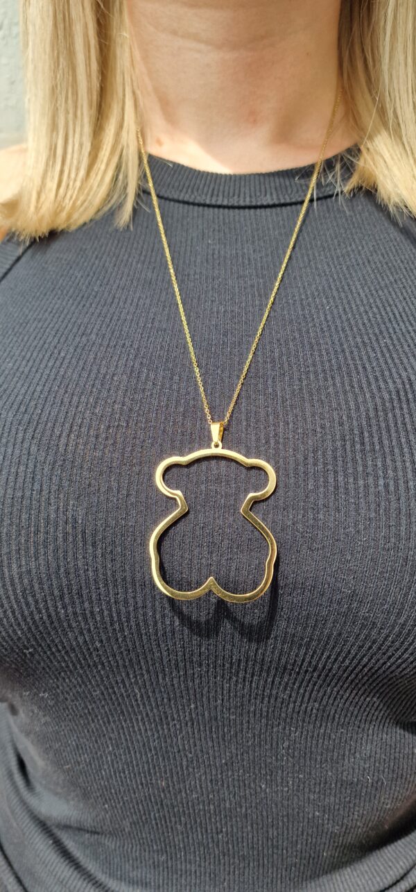 To uroczy naszyjnik z dużą zawieszką w kształcie misia, który przyciąga uwagę swoim wyjątkowym designem. Naszyjnik jest idealnym dodatkiem, który łączy w sobie dziecięcy urok i dorosłą wyrafinowaną estetykę.