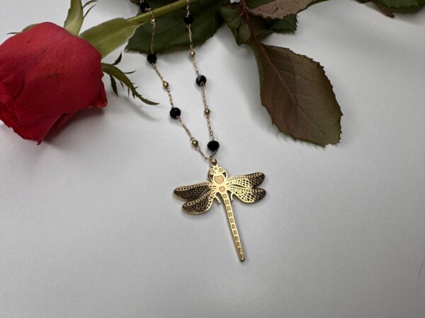 Delikatny naszyjnik w kolorze złotym z zawieszką ważki – symbol lekkości, wolności i kobiecej siły.