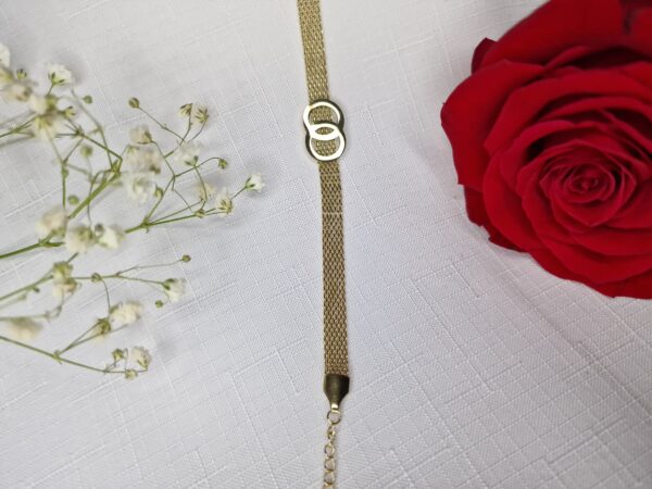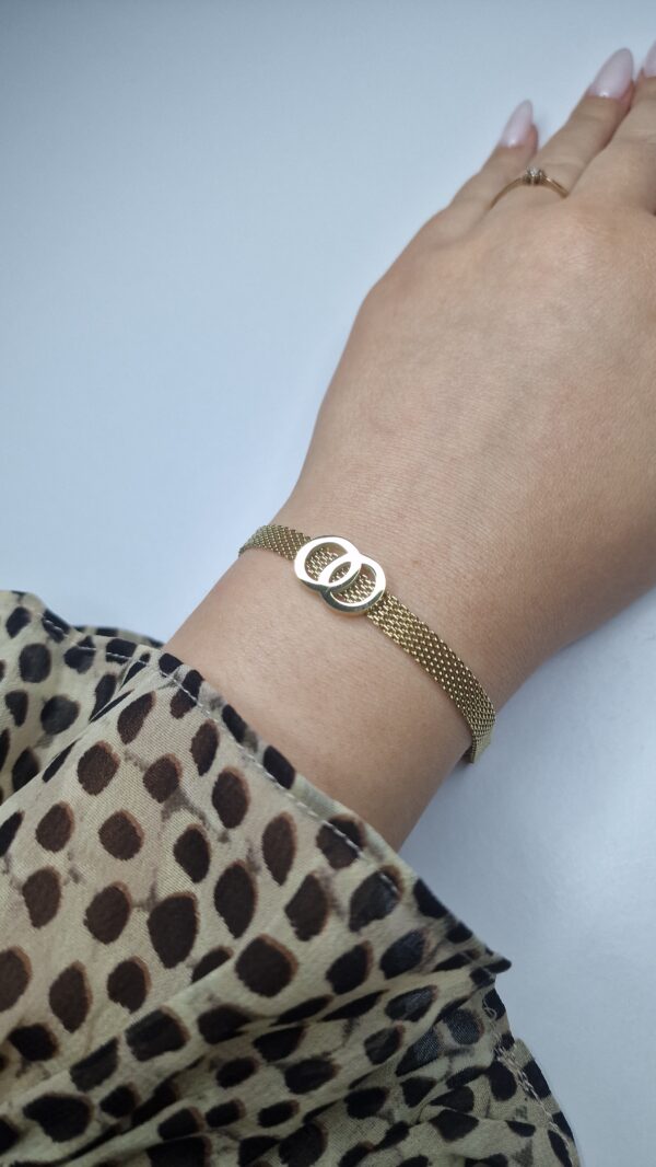 Złota bransoletka z ozdobnymi kółeczkami stal chirurgiczna