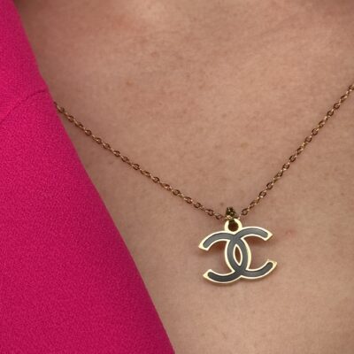 Złoty łańcuszek ze stali chirurgicznej z czarno-złotą zawieszką